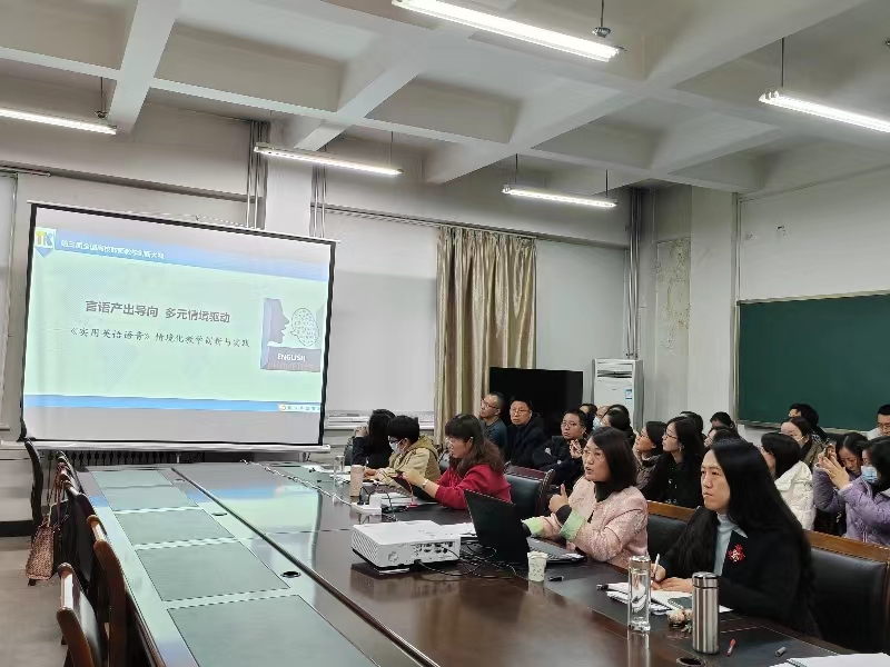 12月15日下午,外国语学院在3号楼A110室举办教师发展沙龙第十期活动暨教师教学能力提升培训会,邀请曲阜师范大学外国语学院硕士生导师高歌副教授作题为“以赛促教,卓越成长—高校外语教师教学创新大赛实践经验分享”的学术报告,副院长张颖、学术副院长闫彩霞、范莉,院长助理刘暖、教学科研办公室主任栾珍及全体专任教师参加。本次活动由副院长张颖主持。
