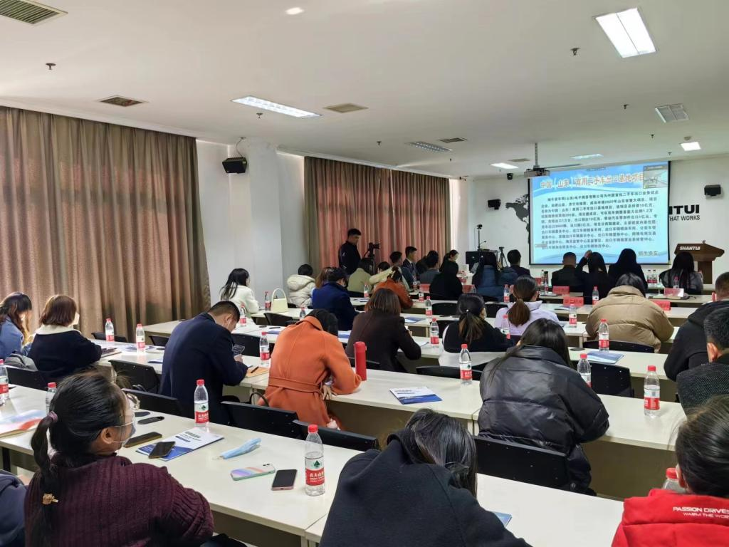 陆波在推介会上发表了热情洋溢的致辞,对济宁市工业企业联合会前期会议精心筹备表示衷心感谢,对参加就业宣讲推介会的各家企业及代表表示热烈欢迎,并简要介绍了学校学院情况、专业设置、人才培养及就业工作。他指出,此次宣讲会遴选的企业是济宁市工业企业联合会精选出来的优质外贸企业,与商务英语专业及跨境电商人才培养方向匹配度高,他希望同学们尽早把握机会,做好个人职业规划,积极投递简历,寻找就业机会。