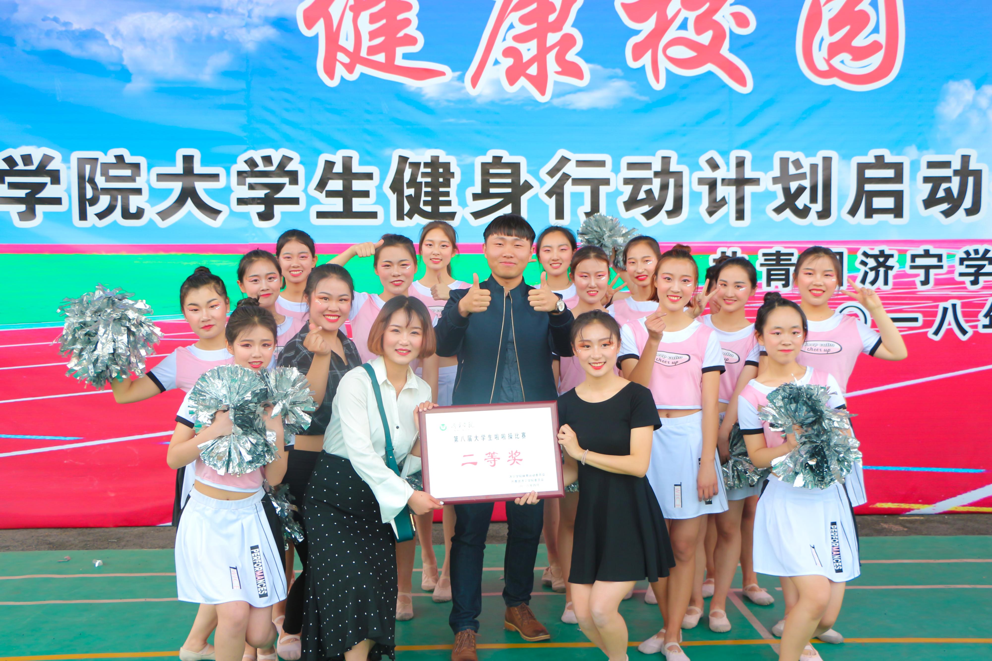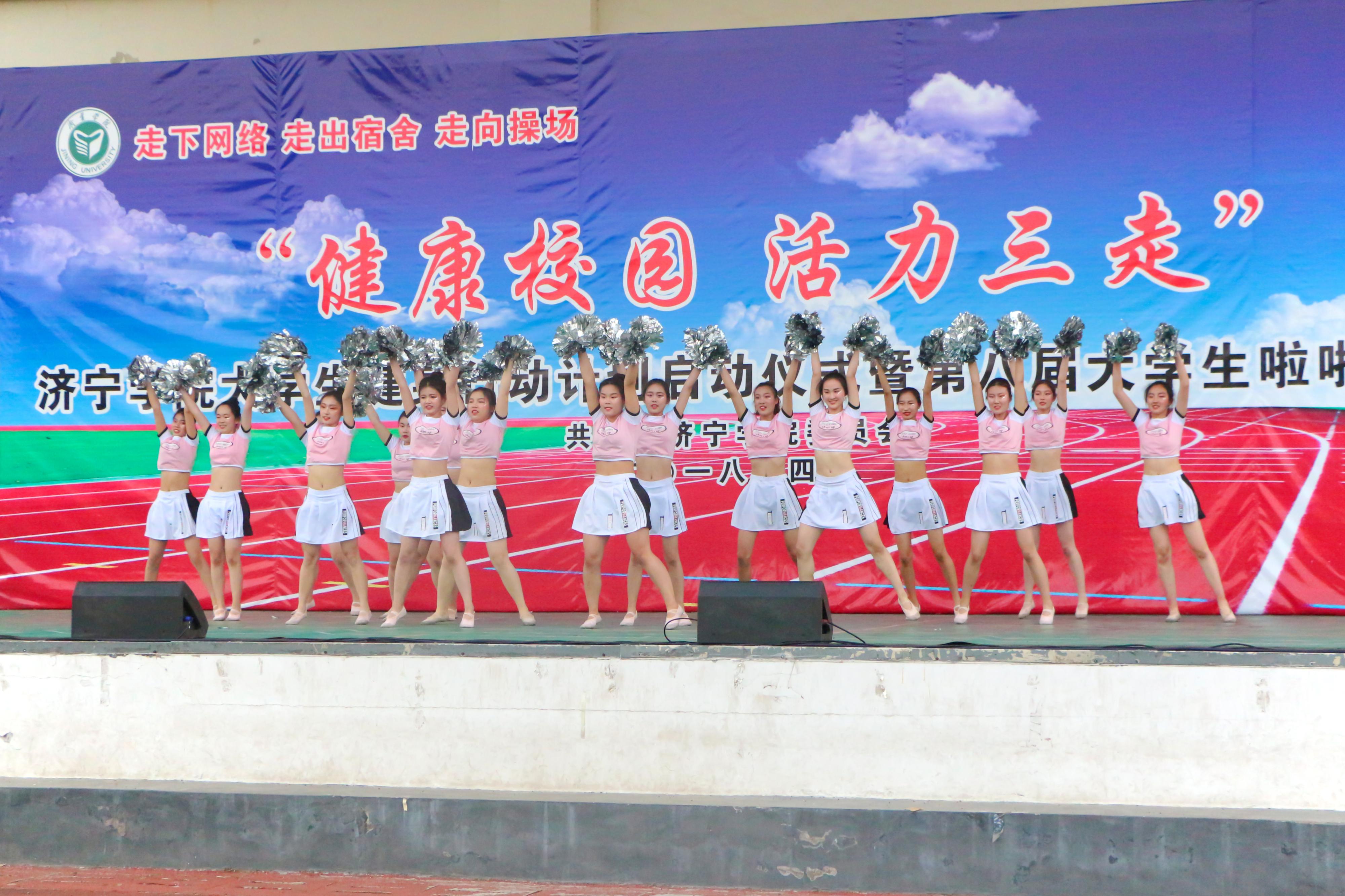 4月11下午4:30由济宁学院体育委员会主办,共青团济宁学院承办的济宁学院大学生健身行动计划启动仪式暨第八届大学生啦啦操大赛在西体育场隆重举行。济宁学院党委副书记马恩、学生工作处处长夏可树、团委书记马新蕾出席了启动仪式,各系书记、副书记和团总支书记也出席了此次大赛。