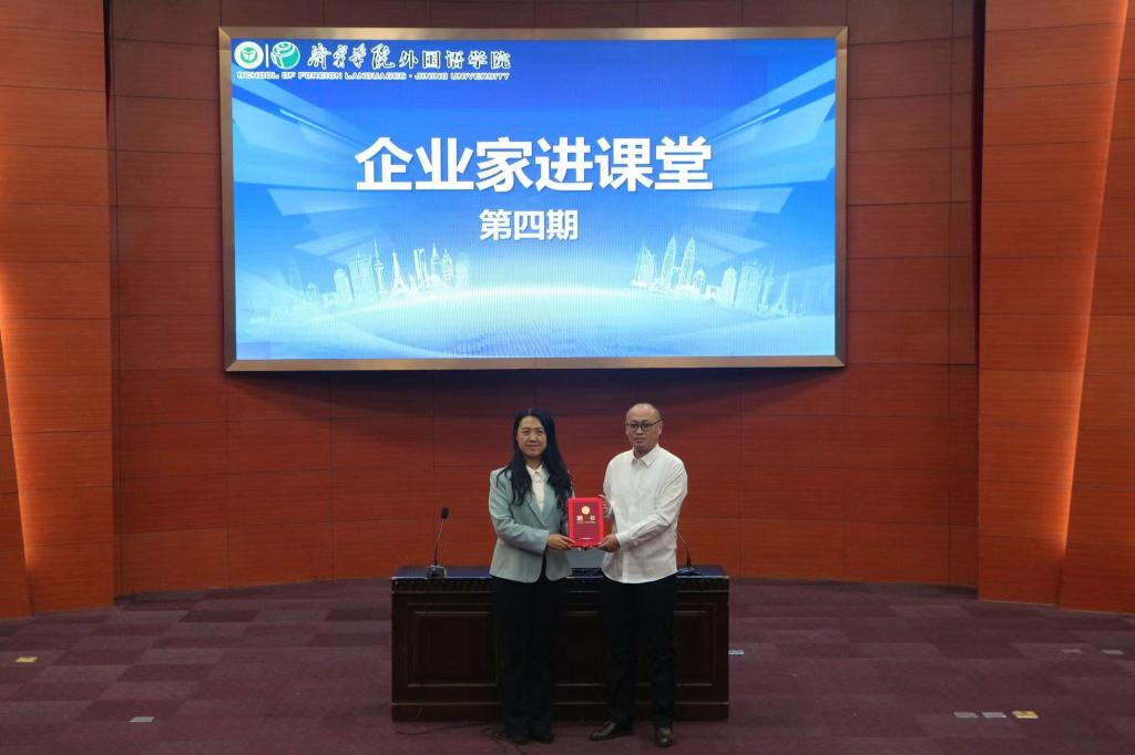 讲座伊始,张颖为车先猛颁赠了企业导师聘书。