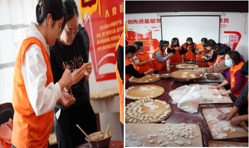 早上八点,志愿者们早早地就来到北夏宋村文化大院开始忙碌。大院里,不时传来阵阵欢声笑语,志愿者及老人们围坐在一起,揉面、擀皮、调馅、包饺子,大家一边包饺子,一边拉家常,现场一片节日的温馨气氛。不一会儿,盘子里就摆满了各式各样的饺子。