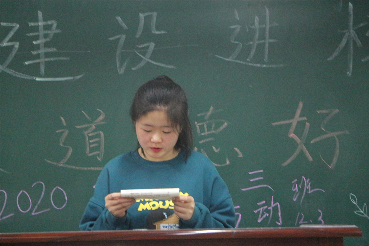 12月4日是我国第七个宪法宣传日,各班团支书向同学们讲解了宪法的重要意义以及宪法在国家的地位,呼吁同学们一定要知法、懂法、守法,做新时代遵纪守法的好青年。活动期间,各班团支书介绍了召开十九届五中全会的盛况,传达了会议精神,并要求同学们主动学习会议精神,关心国家大事。各班强调了学风建设的重要性,并开展了关于学风建设的主题演讲,“创优美环境,树优良学风”,要求广大学生培养良好作风,从日常小事做起,建立良好的学风班风,争做新时代优秀大学生。