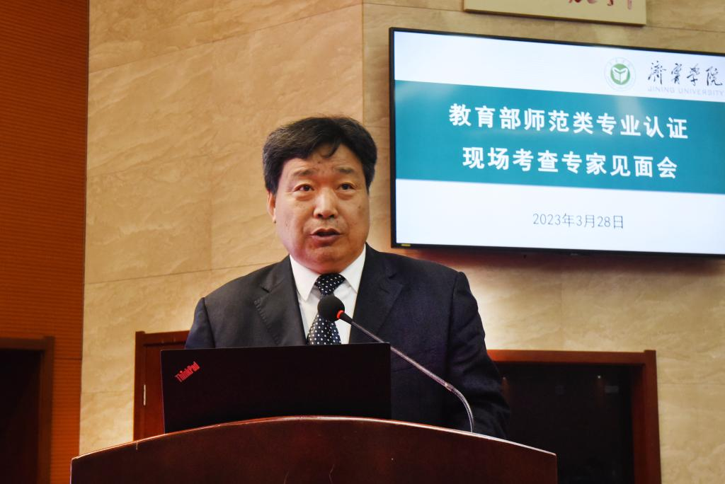 申培轩代表山东省教育科学研究院向长期以来关心支持山东师范教育发展的各位专家表示衷心的感谢,并介绍了山东省师范类专业认证工作开展情况。他希望各位专家以问题为导向,把脉问诊、传经送宝,帮助学校查找不足、开出良方,促进学校专业建设和整体办学水平的提高,希望学校抓住这次认证的机遇,认真学习专家的先进理念、先进经验,全力打造一流专业,培养一流的师范生和毕业生。