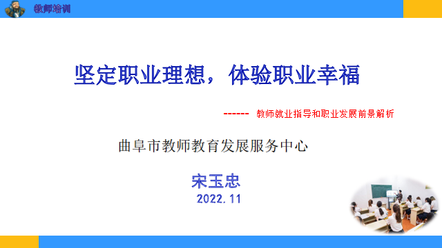 2.主讲人简介:宋玉忠,曲阜市教育局教师教育中心初中英语教研员, 高级教师,曲阜市教育名师工作室管理办公室主任,济宁市优质课一等奖获得者,济宁市教学能手、骨干教师、教学先进个人、特级教师,山东省教育学会外语教学研究2010-2012年度“先进工作者”,第七届“全国中小学英语教师教学基本功大赛”“优秀指导教师”,曾指导曲师大附小英语教师马彦获全国小学英语教师教学基本功大赛一等奖第5名,指导曲师大附中英语教师滕景华、实验中学英语教师孔令艳获山东省优质课二等奖,辅导曲阜市杏坛中学王龙老师获山东省青年教师技能大赛一等奖第六名;在指导青年教师专业发展方面颇有心得;自2011年以来,一直参与编撰《济宁市初中英语学业水平考试指导与说明》《同步练习册》;自2011年至今,六次参与济宁市中考命题,在命题方面颇有心得。